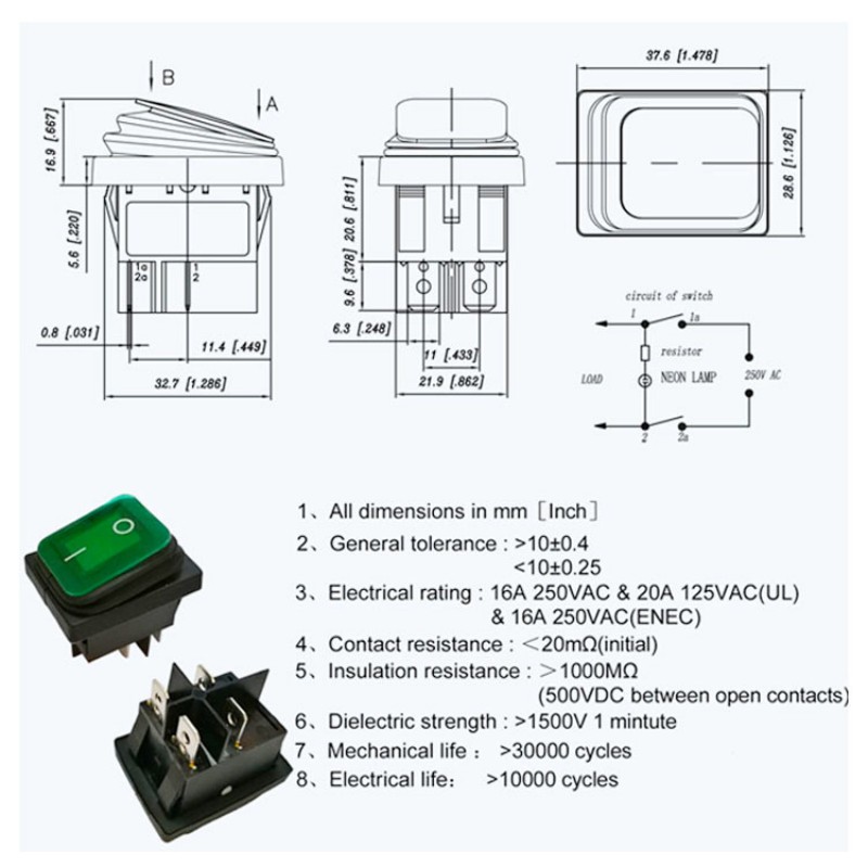 Жарықдиодты жарықтандыру аймағы жылтырсыз біркелкі жарық беретін, жарықтандырусыз, жарықтылықпен 50-150 CD / M² деңгейінде бақыланады, күн ішінде айқын көрінеді және түнде таң қалдырады. Индикатор логикасы әр түрлі құрылғылардың күйге қосылу қажеттіліктерін қанағаттандыру үшін «Қуатталған кезде» және «Қуатты, өшірілген кезде» және «Қуатты түрде өшірілгенде» және «Өшетін» және «Өшірулі» және «Өшірулі», мысалы, қалыпты жұмыс істеу үшін «Жасыл шам», әдетте, дәстүрлі рокердің ауыстырып-қосқыштарынан туындаған қателіктерді шешуге болады.