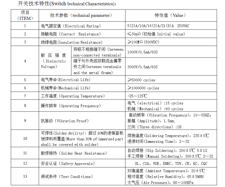 | 13 | Тест шарттары | Қоршаған орта температурасы: 20 ± 5 ℃ 1500V / 0,5 / 60s Ауа қысымы: 86 ~ 106KPA |