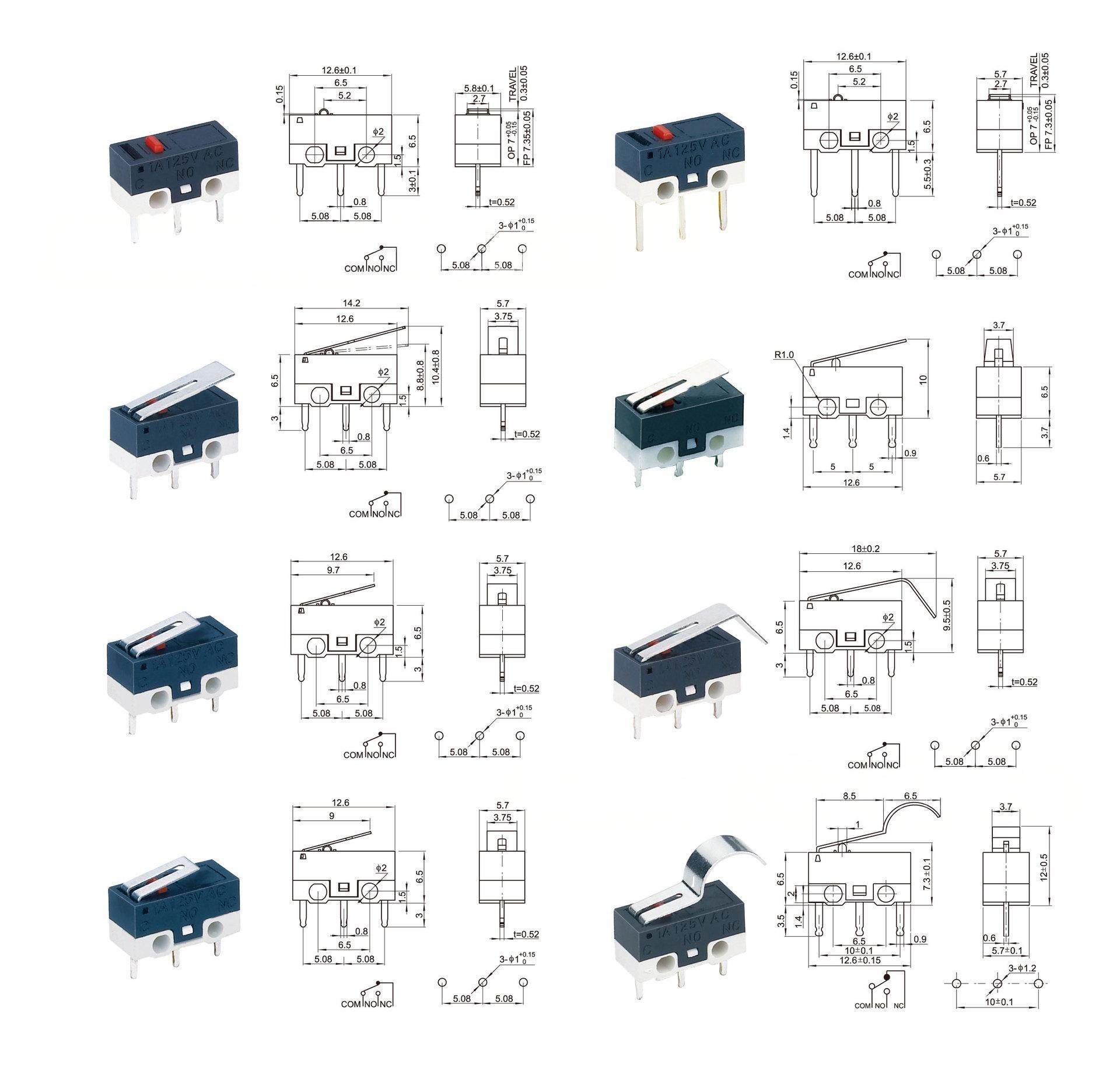 Smart есіктерін құлыптау тінтуірінің қосқышы минималист, ультра-ықшам дизайн, жалпы өлшемдері бар, тек 18 × 10 × 6mm, өлшемін әдеттегі микро қосқыштармен салыстырғанда 15% -ға азайтады. Оны кіші датчиктер, портативті электронды құрылғылар және дәл құралдар сияқты шектеулі кеңістікті оңай енгізуге болады. Оны орнату икемді, үш орнату әдісін қолдайды: PCB қосылатын модулі, дәнекерлеу және салған. Терминалдар аралықпен стандартталған, құрылғыны орнату нүктелеріне өзгертулер енгізуді талап етпейді, құрастырудың тиімділігін 40% -ға арттырады және өндірушілердің түзілуіне жұмсалған шығындарды азайтуды қажет етеді.